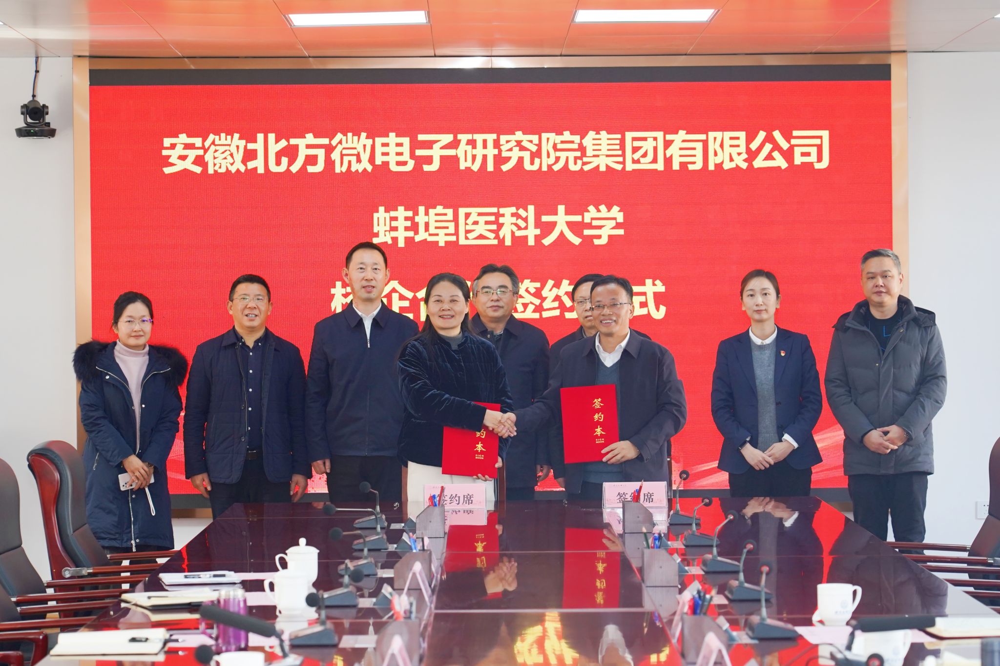 1月12日上午,安徽北方微电子研究院集团有限公司董事长陈丙根、安徽省智能传感器产业创新研究院副院长王世和一行来校交流座谈。会上,我校与安徽北方微电子研究院集团有限公司正式签署战略合作协议。校领导朱立军、郑兰荣、刘浩,党委(校长)办公室、科研处、社会合作处等相关部门负责人参加座谈。
