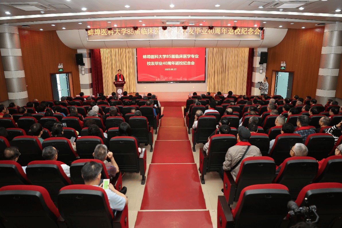 9月27日,蚌埠医科大学1985届临床医学专业近200位校友怀着对母校的深切眷恋和同窗情谊,从五湖四海齐聚学校,隆重举行毕业40周年返校纪念活动。校党委副书记、校长郑兰荣,教务处、学生处、第一临床医学院(第一附属医院)、校友办等部门负责人和学生志愿者们与校友共庆团圆日。